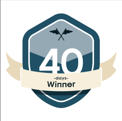 Consistentie leidt tot momentum en momentum leidt tot grote resultaten. Je hebt de afgelopen 40 dagen momentum opgebouwd, daarmee verdien je een nieuwe badge: de exclusieve 'Winner' badge. Goed bezig, keep it up! 💪